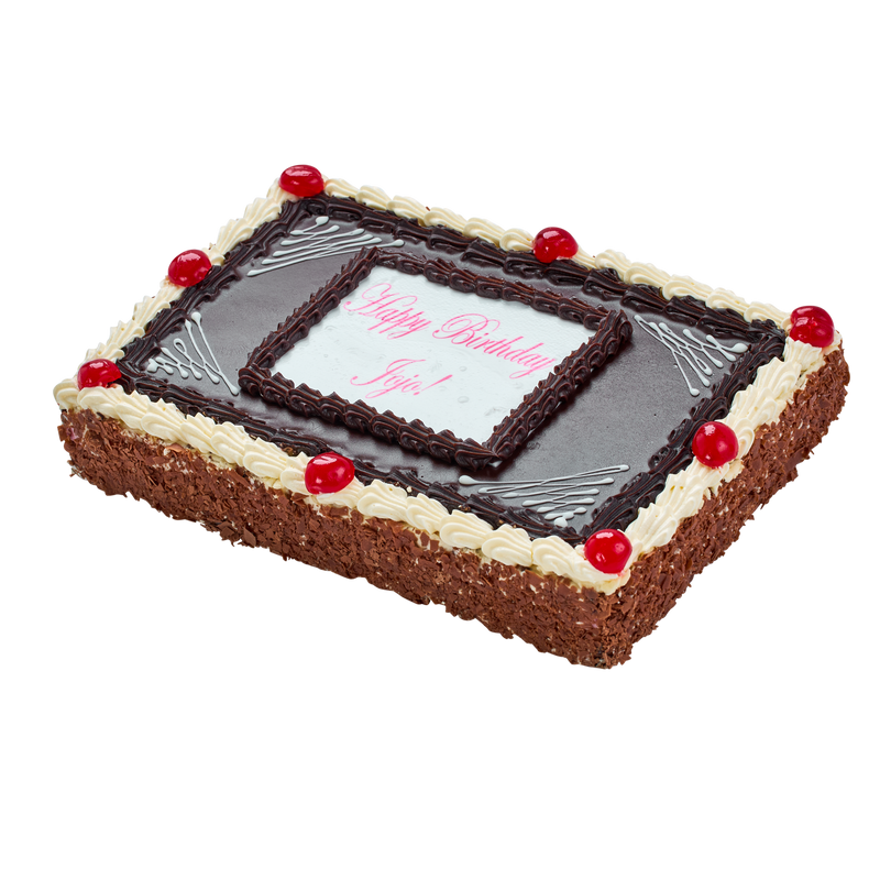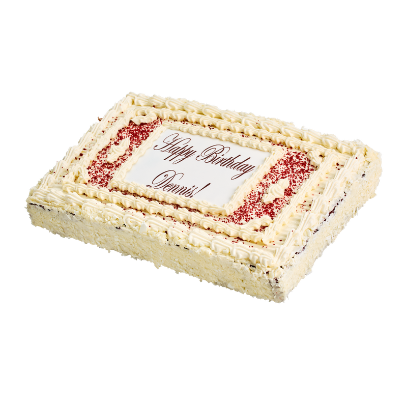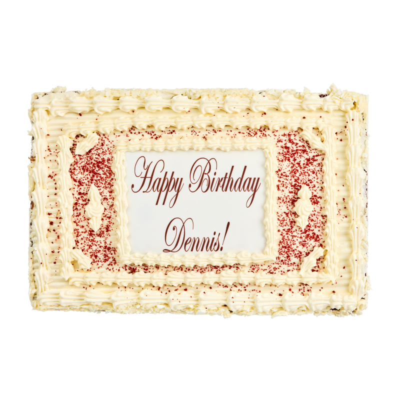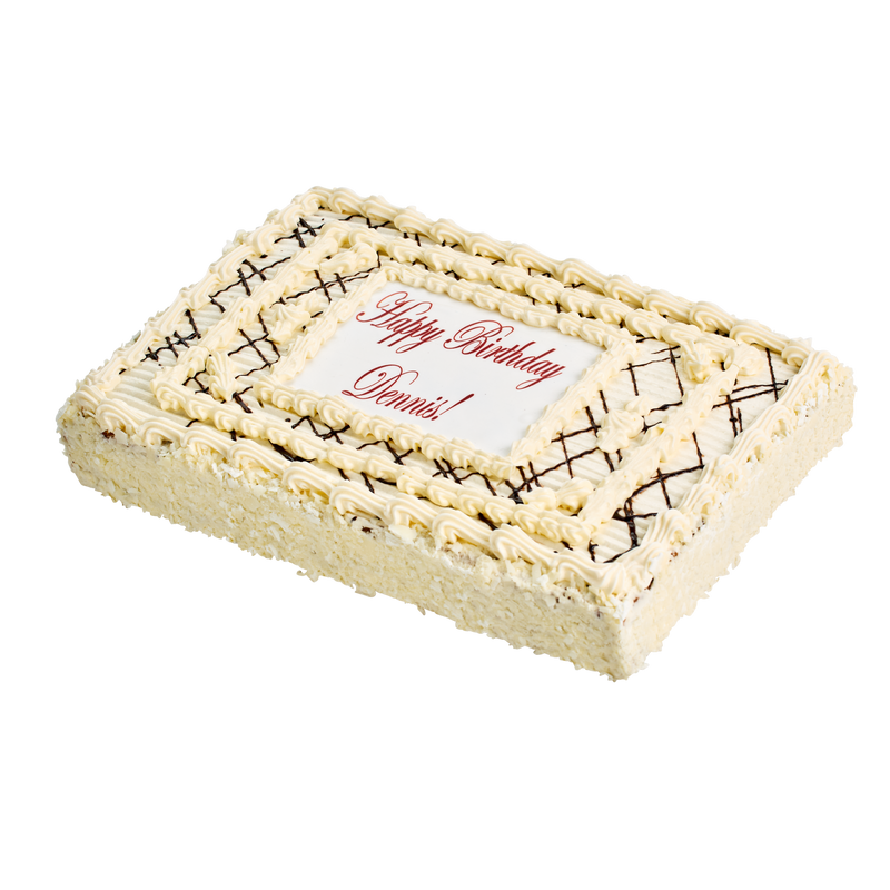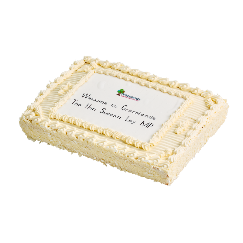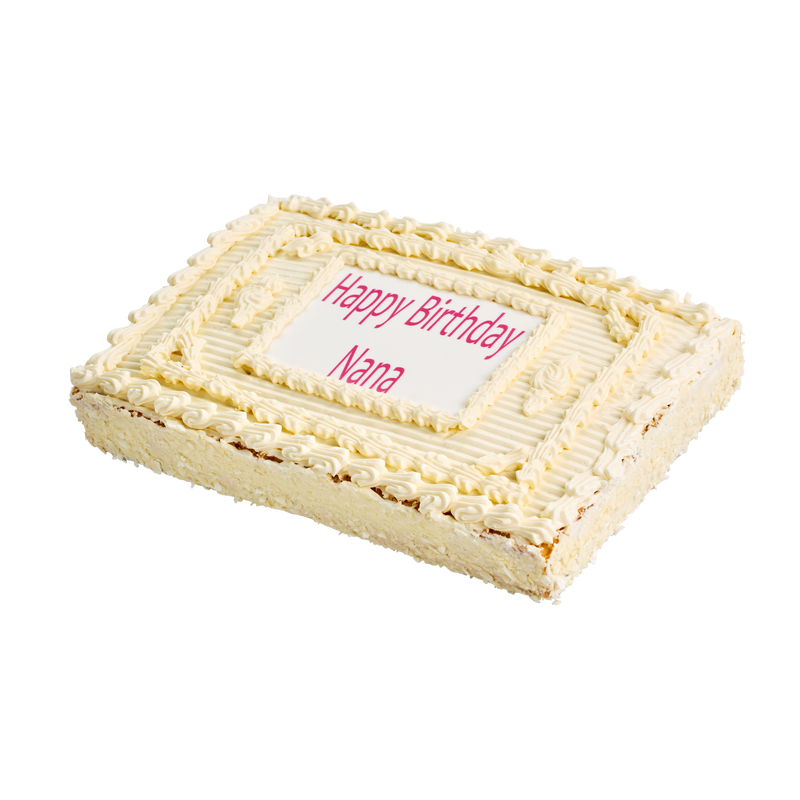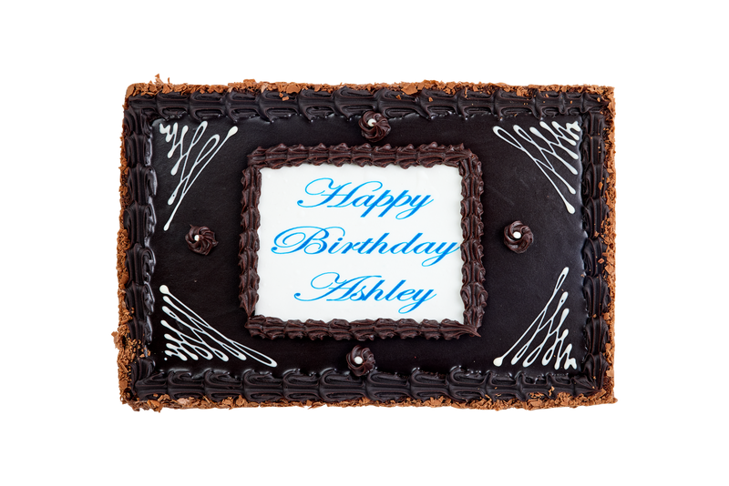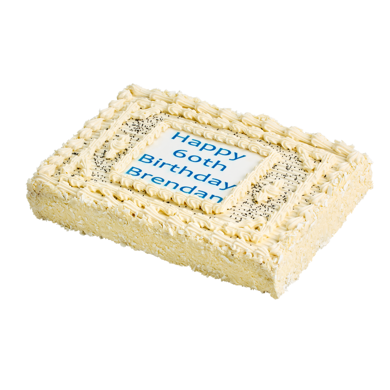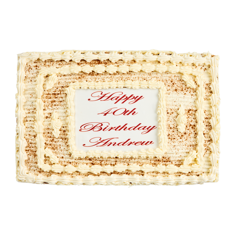 We can personalise one of our Extra Large, Full or Half Slab Cakes or Cheesecakes using an edible white icing sheet.