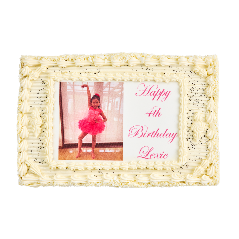 Our Photo Cakes are printed on a white edible icing sheet and are available only at The French Kitchen Castle Hill. Our cut off times for the weekend is Thursday 11.45am.