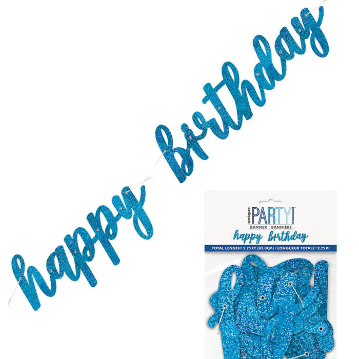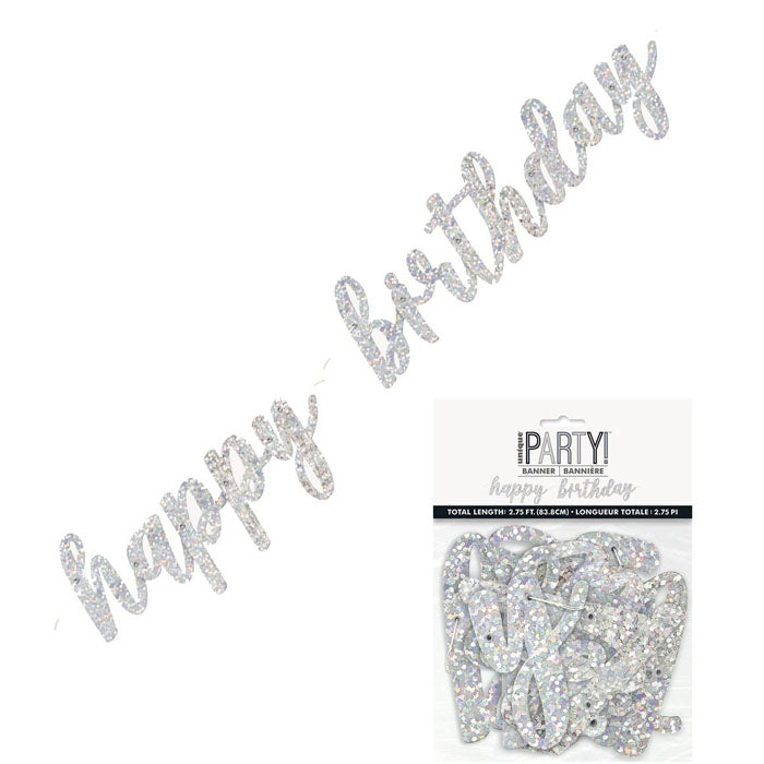 Glitter Jointed "Happy Birthday" Banner- Silver, Blue or Pink
