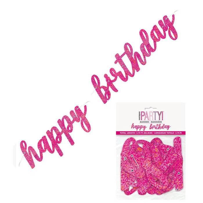 Add some sparkle to your celebration with this dazzling glitter "Happy Birthday" banner! Featuring jointed letters in a stylish script font, this shimmering decoration is the perfect way to make your party shine.