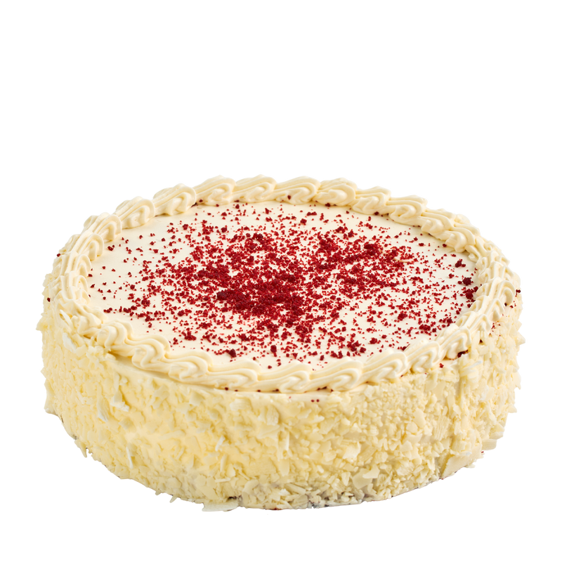 Indulge in our signature Red Velvet Cake Round—a showstopping dessert that delivers elegance and flavour in every slice. This luxurious cake features a velvety red sponge paired with tangy cream cheese frosting and finished with delicate white chocolate flakes for a touch of sophistication. Perfect for celebrations, special occasions, or whenever you deserve something truly extraordinary. Our "Even Better" version ensures premium quality and taste that will impress your guests and satisfy your cravings.